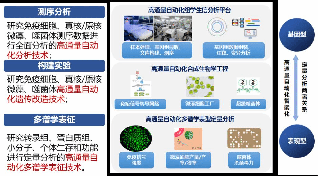 3. 定量地建立对代表性真核细胞、原生生物、病毒基因型和表型(基因转录水平、蛋白表达量、小分子生成量、个体生存和功能水平)之间的关系。